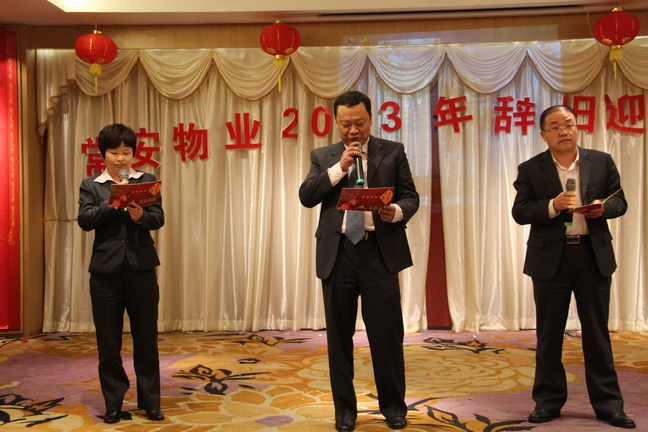 2013年1月25日常安物業(yè)召開了2012年度表彰總結(jié)大會及2013年辭舊迎新晚會。參加會議的主要人員有副總經(jīng)理-黃國義、副總經(jīng)理-蔡愛花、董事長-張武。會議主要對公司在2012年度的各項(xiàng)工作進(jìn)行了匯報(bào)與總結(jié),并制定了2013年的發(fā)展戰(zhàn)略。會議中對2012年度優(yōu)秀員工及先進(jìn)服務(wù)中心及主任進(jìn)行了表彰,并與各服務(wù)中心簽訂了2013年目標(biāo)管理責(zé)任書。