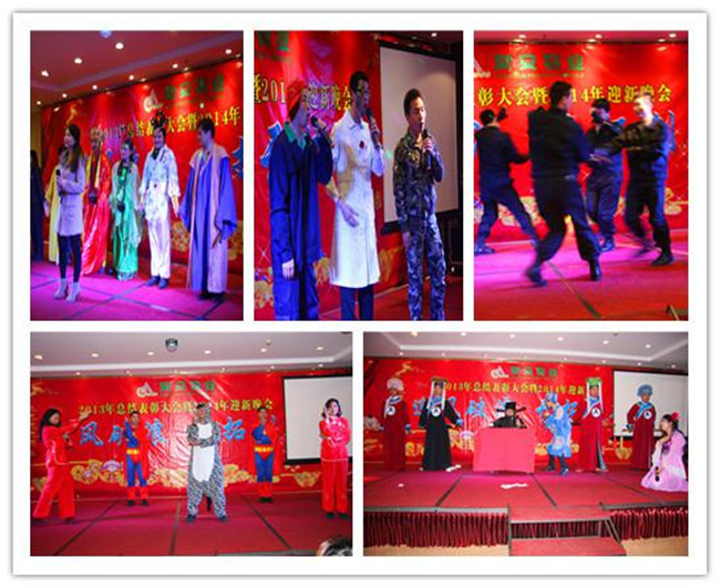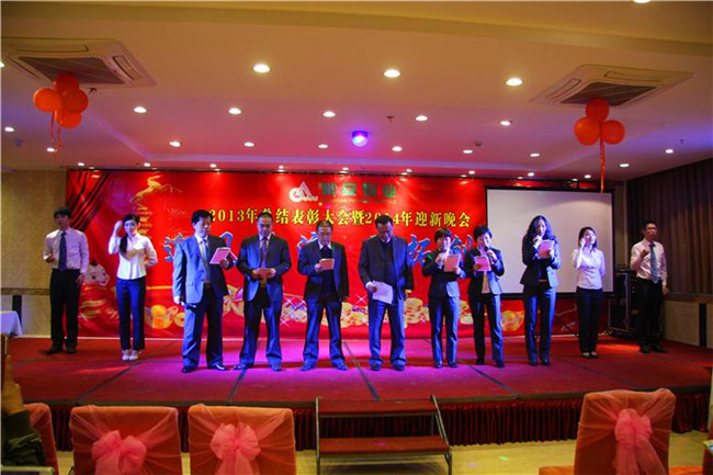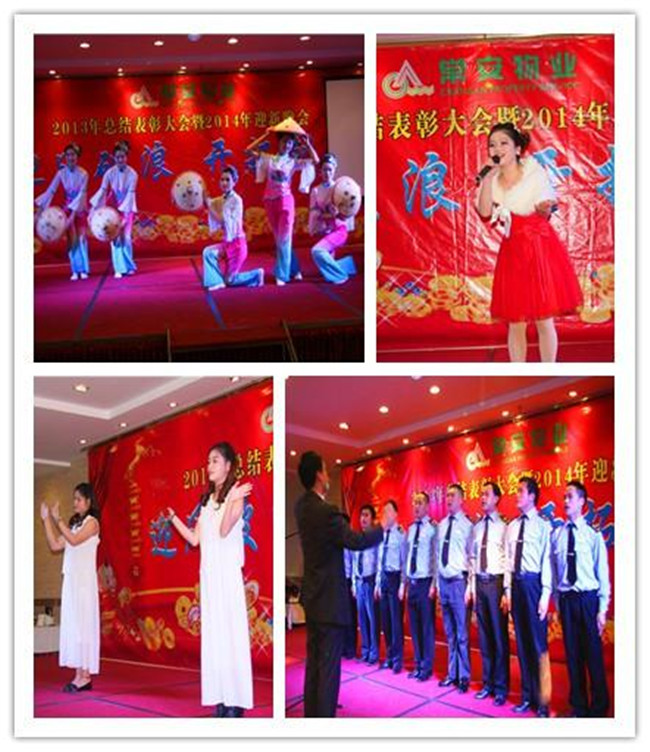 常安物業(yè)年終總結(jié)表彰大會(huì)暨迎新晚會(huì)于2014年1月17日在學(xué)府路順德佬圓滿結(jié)束。整個(gè)活動(dòng)分為三個(gè)環(huán)節(jié)。1、2013年終總結(jié)大會(huì)。張總在會(huì)議上對(duì)公司一年主要工作、取得的成績(jī)做了通報(bào),對(duì)2013年表現(xiàn)優(yōu)秀的服務(wù)中心、個(gè)人給予表彰。2、迎新晚會(huì)。各部門、服務(wù)中心的精彩表演;搞笑、歡樂的游戲;激動(dòng)人心的抽獎(jiǎng)將整晚的活動(dòng)拉向高潮。3、歡樂晚宴。我們共同舉杯,開懷暢飲,慶祝2013年的輝煌,迎接新一輪的挑戰(zhàn)。