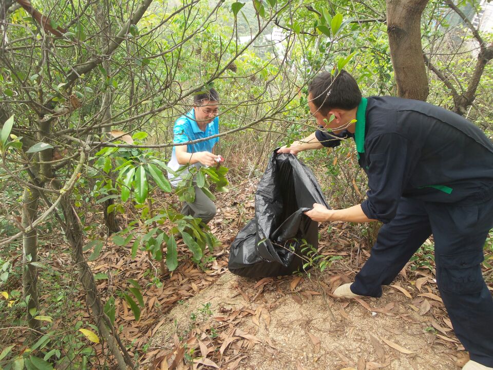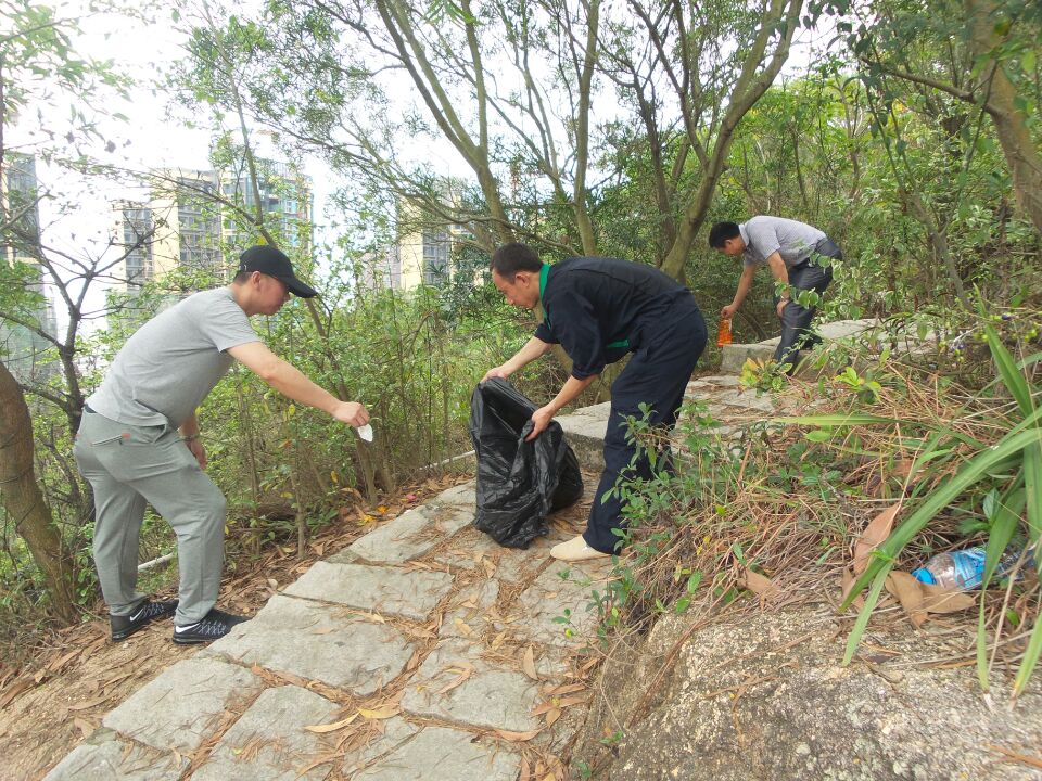 下午14點整,公司全體員工安全抵達(dá)指定的集合地點,大家迅速分好組,拿上垃圾袋,便開始繞著南山緩緩而行,沿途環(huán)保。一路上大家有說有笑,有贊嘆風(fēng)景秀麗的,有吐槽山路太陡的,有比拼撿到款泉水瓶子個數(shù)的,不知不覺,我們已經(jīng)來到了山頂。