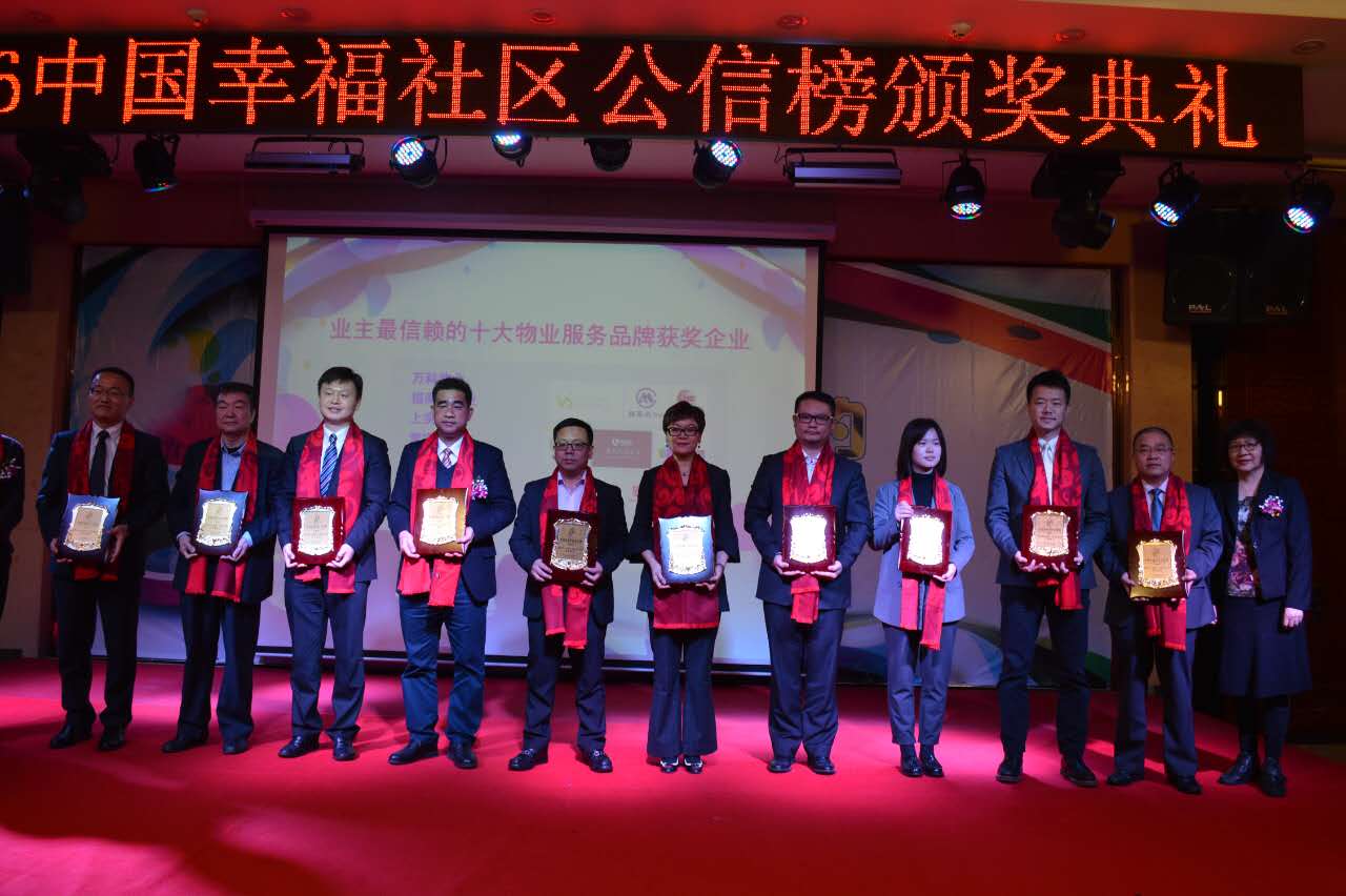 由《住宅與房地產(chǎn)》雜志主辦,物業(yè)管理微信平臺(tái)協(xié)辦的“2016中國幸福社區(qū)公信榜頒獎(jiǎng)典禮”,歷經(jīng)15天逾百萬人積極投票,2016年12月28日分別公布了7個(gè)獎(jiǎng)項(xiàng)的獲獎(jiǎng)?wù)呒邦C發(fā)榮譽(yù)獎(jiǎng)牌。