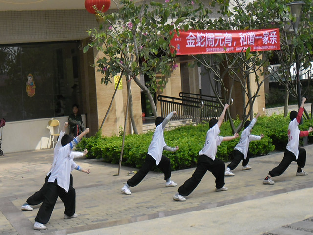 活動(dòng)開(kāi)始前,紅紅火火的腰鼓表演和少兒武術(shù)表演引來(lái)不少居民下樓觀看。為了增添節(jié)日氣氛,此次活動(dòng)還特別邀請(qǐng)到留仙居腰鼓隊(duì)和春秋武藝培訓(xùn)中心前來(lái)為麗雅苑小區(qū)的居民們作開(kāi)場(chǎng)表演,效果十分顯著。