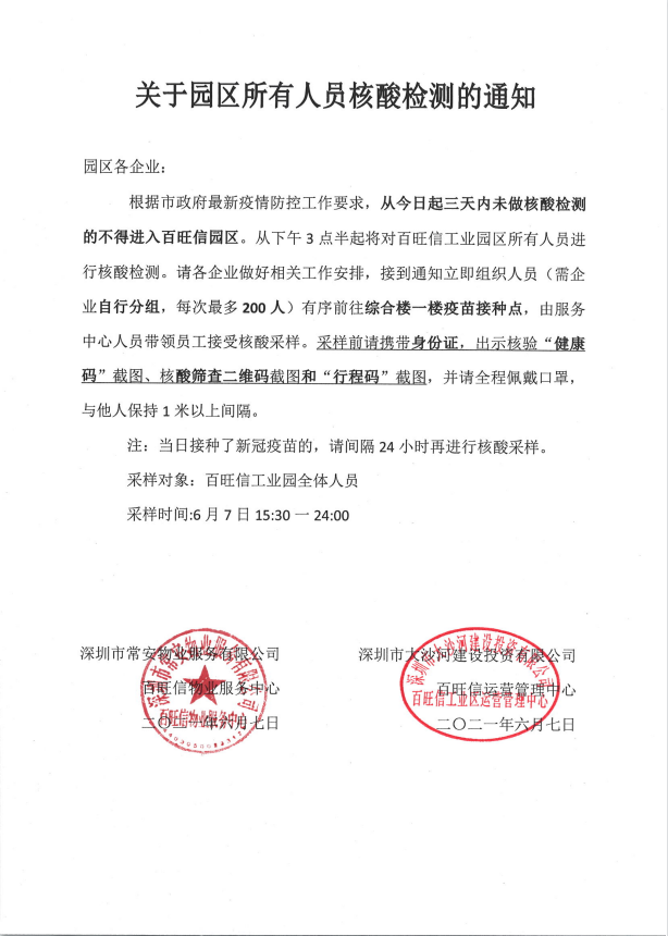 為響應(yīng)我市關(guān)于疫情防控的最新要求,深圳市常安物業(yè)服務(wù)有限公司及下屬各服務(wù)中心全力配合南山區(qū)防疫部門(mén)、各轄區(qū)社區(qū)工作站全面覆蓋我司在管項(xiàng)目的核酸檢測(cè)工作。