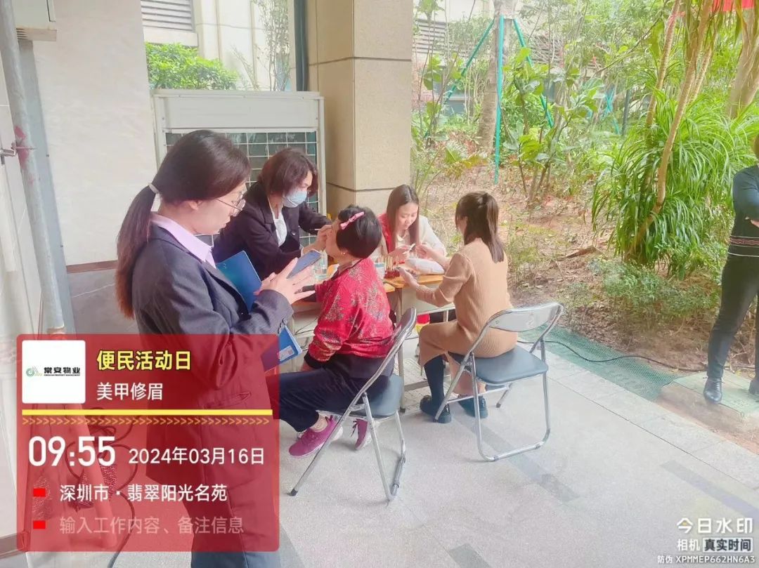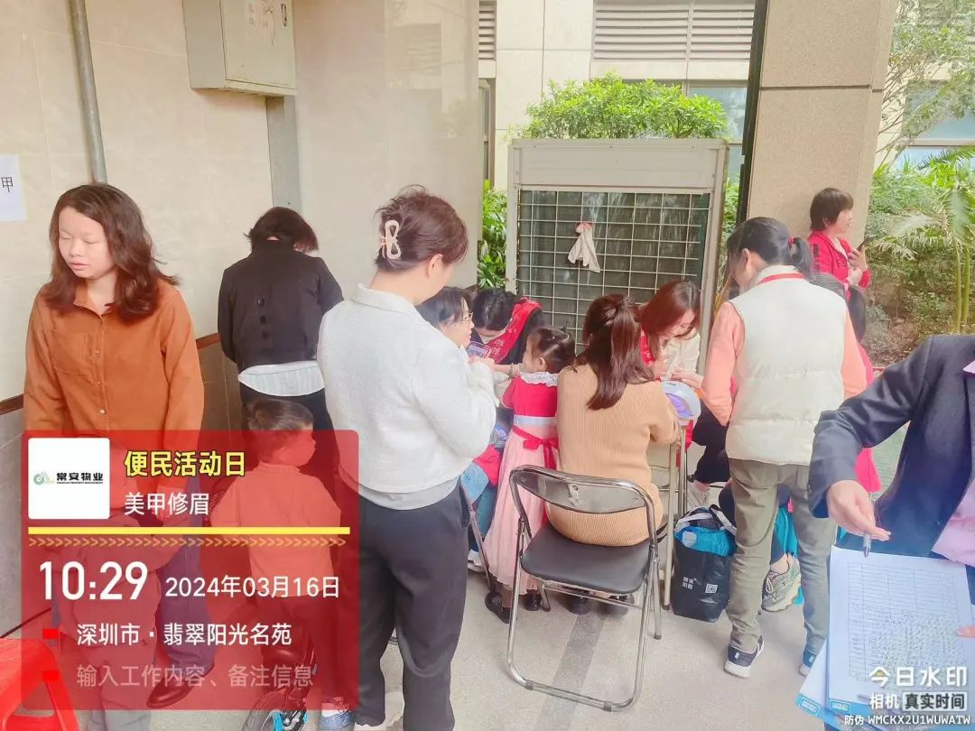 關(guān)注每一個細節(jié),為您的生活添彩!為方便本小區(qū)業(yè)主和住戶的居家生活,提升業(yè)主滿意度,提倡助人為樂,創(chuàng)建和諧小區(qū)。常安物業(yè)翡翠陽光名苑小區(qū)便民活動,在2024年3月16日(周六)上午09:30-12:30如期舉行:服務(wù)項目包括送水票、清洗服務(wù)、義剪、義診、美甲、修,獲得業(yè)主一致好評。