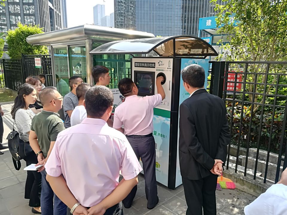 參觀垃圾分類(lèi)投放機(jī)的使用