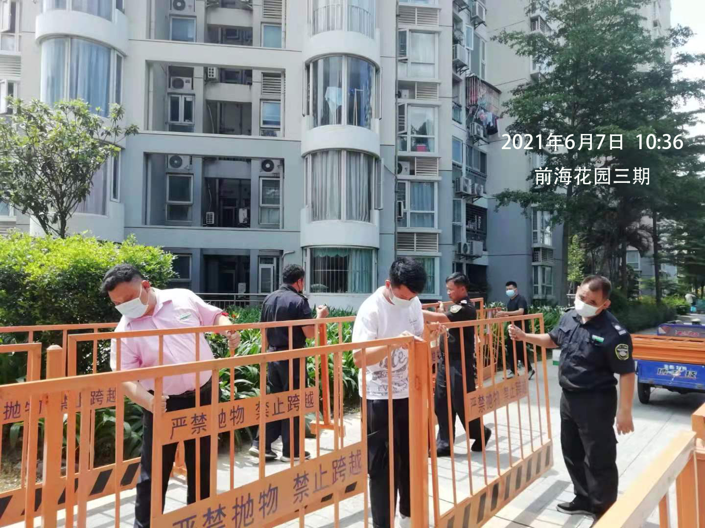 一、緊急協(xié)調(diào),布置圍擋。我司前?;▓@、崇文花園、百旺信高科技工業(yè)園、荔苑小區(qū)等多個(gè)服務(wù)中心接獲社區(qū)工作站通知的第一時(shí)間,各項(xiàng)目主任首當(dāng)其沖、返回崗位,配合區(qū)防疫部門(mén)在小區(qū)/園區(qū)建立圍擋并開(kāi)展新冠核酸檢測(cè)工作,并組織協(xié)調(diào)休假人員加入應(yīng)急布置工作之中。